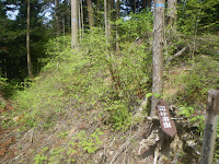 標識1より林道を左に逸れ山道に入る;午前9時58分(標高680m)