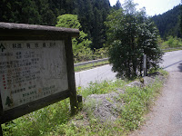 GPSギアにプロットしたトラックログは、東光寺から県道を越えこの案内板のあるガードレールの切れ目から面河川へと下り、山入りしていた。次回はここを左に逸れて面河川を渡るのだろう。