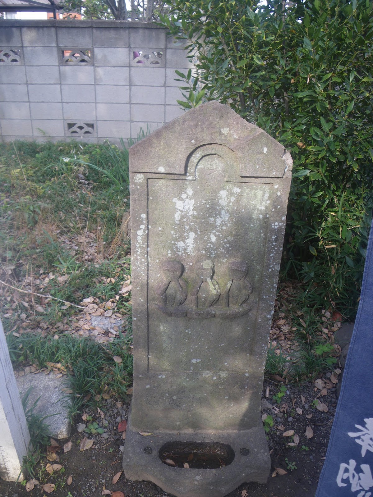 幢は旗章(私注;旗印し)を意味し,インドではこれを石面に表してストゥーパや仏殿の前に立てた。中国へは唐・宋時代に伝わり,蓮華座の基台の上に《仏頂尊勝陀羅尼経》を刻んだ八角の長い石柱を立て,その上に中台,仏龕(ぶつがん),笠,宝珠をのせた大理石製の石造物をつくることが流行した。日本にもこの形式の石造物が導入されたが,幢柱に経文を刻まず,地蔵信仰と結び付いて幢,仏龕ともに六角につくられ,一見石灯籠に似た小型のものが多くつくられた。(デジタル大辞典)」