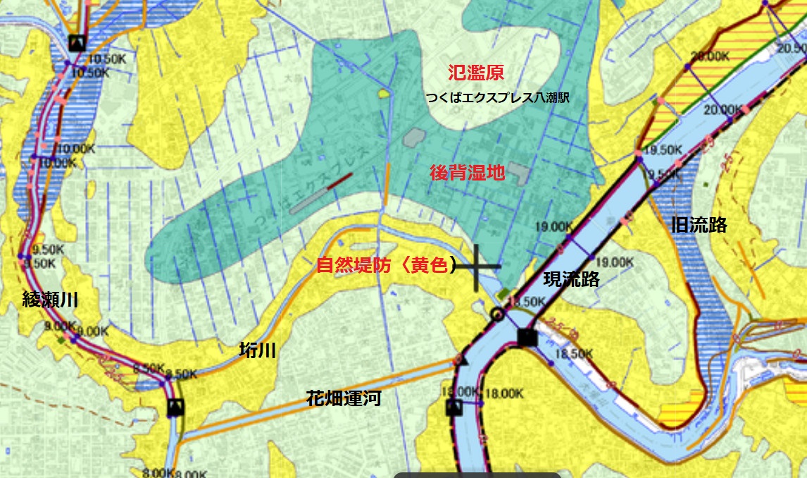 国土地理院の「治水地形図」を見ると、いつだったか歩いた古綾瀬確川筋から毛長川合流天あたりまで、見事に乱流している。流路定まることのない、「あやし川」と呼ばれた所以である。この乱流路も古綾瀬川から下流は上述の如く、江戸の頃直線化工事がなされている。