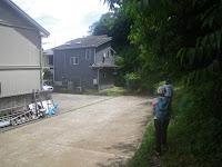 岩場を下りゴルフ場のクラブハウスっぽい建物の横、広場を通り一部舗装された道を進む。鎌倉市と横浜市の境ではあるが、行政区域は横浜市栄区となる。