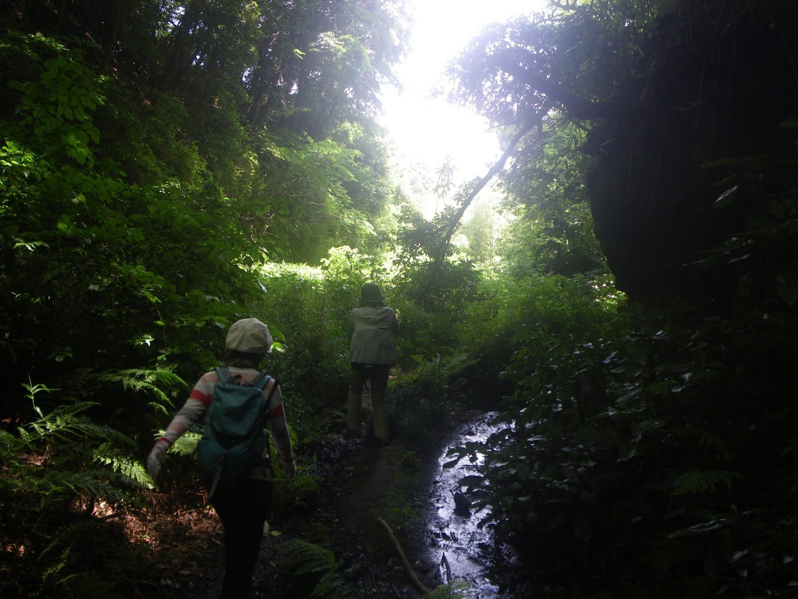 下り道は急な傾斜の上に粘土質の堀込みとなっており、足元が危うい。結構滑る。倒(こ)けつ転(まろ)びつ、三郎の滝に。
