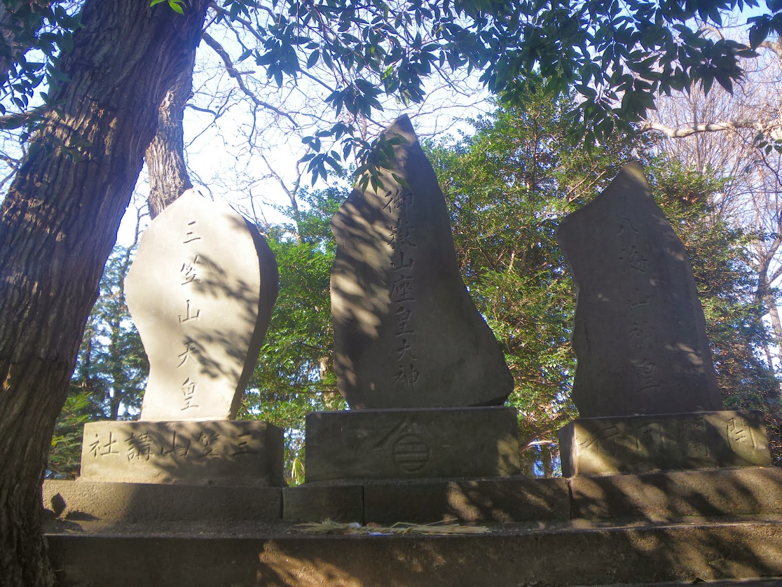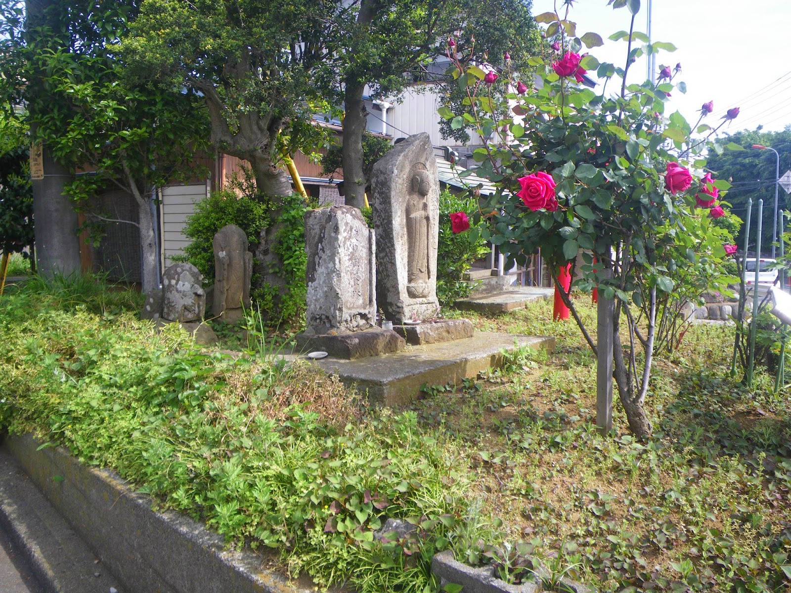 木標には庚申塔と地神塔も記される。小丘には庚申塔とともに、「報蒼天 三十三度」や「富士浅間大山」と言った富士講を記念する石碑とともに、正面に「堅牢大地神」と刻まれた石標があり、「右 大山 十日市場 左ふし さい志やうしみち」と刻まれている。文化14年(1817年)に建立され道標も兼ねている。