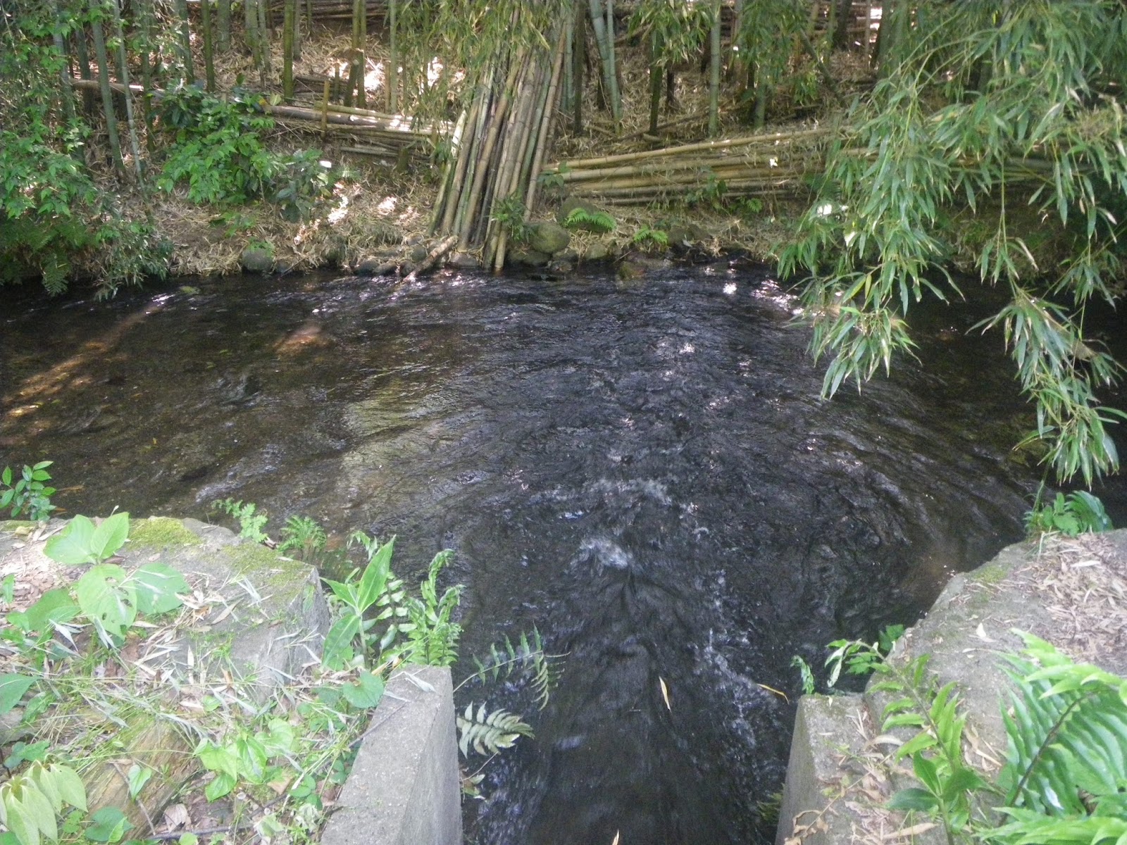 小田急は越えたがその先に四十八瀬川。地図には橋もなく、どうしたものかとは想いながら踏み分け道を進むと前方に竹藪。四十八瀬川はその先に見える。 竹藪を踏み敷き川筋に出るが橋はない。水はそれほと深くもなく、飛び石伝いに川を渡る。