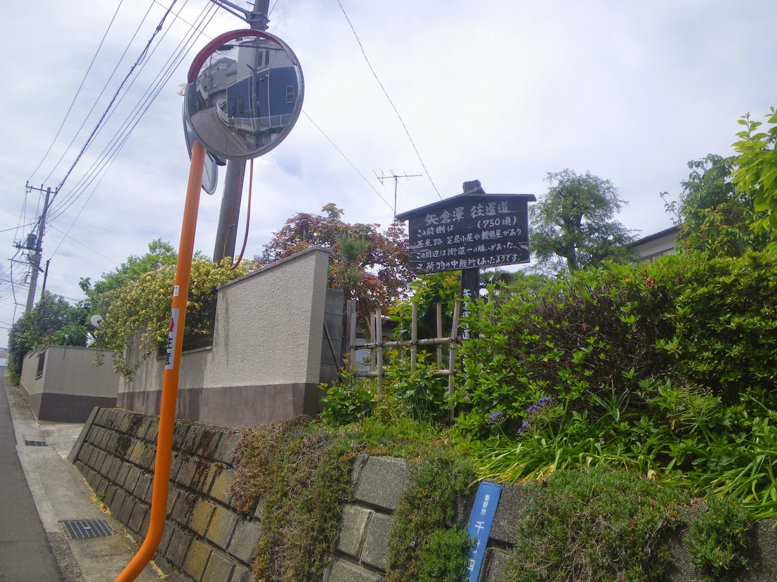 脇にある案内には「矢倉沢往還と千村地区 ;矢倉沢往還は、江戸時代に東海道の脇往還として制定された公道で、東京赤坂御門を起点として、静岡県沼津吉原まで続く道であり、富士山への参詣路でもありました。 今から約千三百年前の八世紀頃には、地域の主要な道として利用されていた様子もうかがえます。