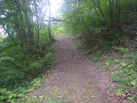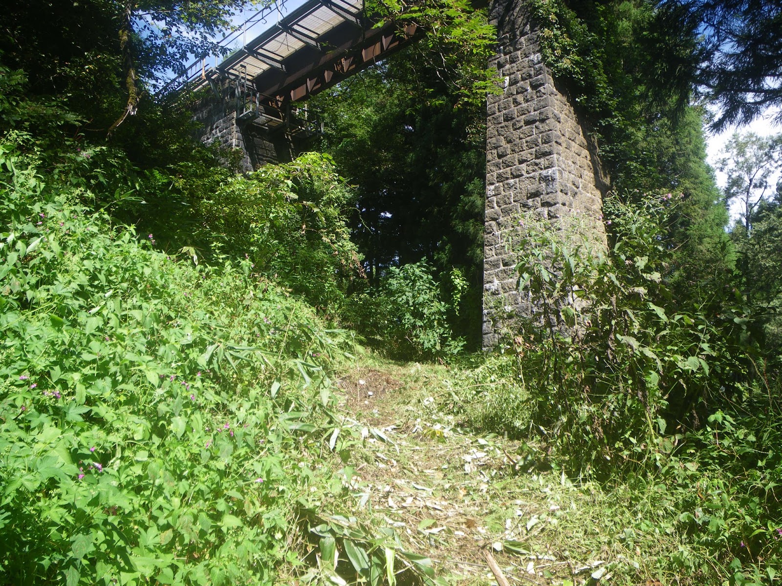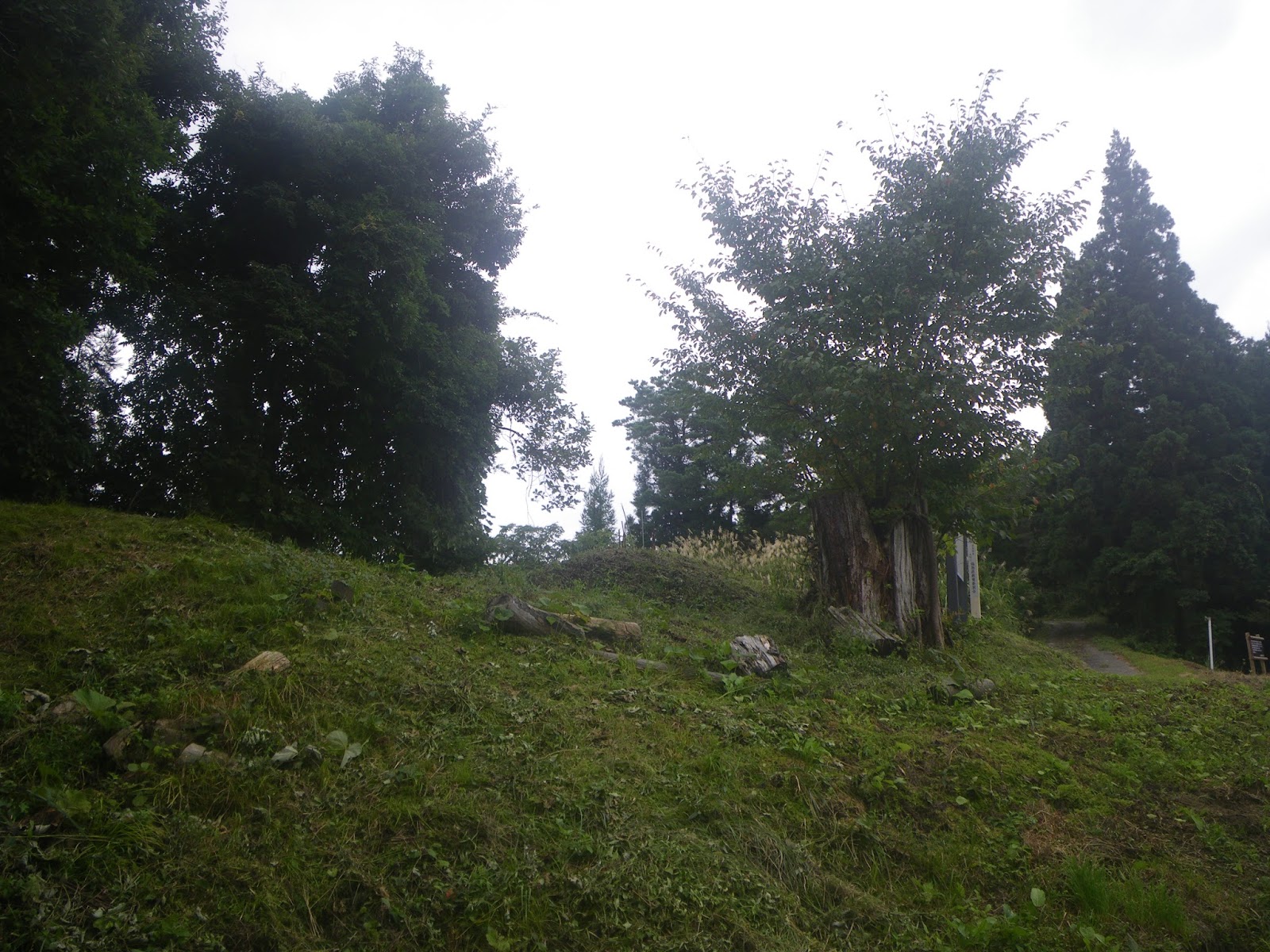 尾根道がちょっと坂のように陥没している感があるが、それが痕跡だろうか。直ぐ下を磐越自動車道が走っている。
