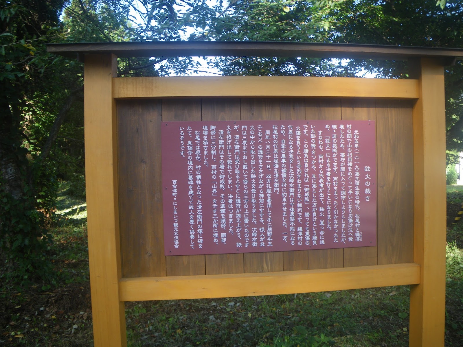 案内を大雑把にまとめると、「束松事件は越前藩士久保村文四郎が会津藩士に殺害された事件で、ここ片門新田場が現場である。ここは越後街道に交差して柳津藤(私注;この地の南)から西羽賀(私注;この地の北)に通じる十字路で逃走には絶好の場所であった。