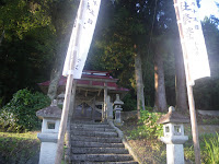 境内に入り拝殿にお参り。境内には神仏混淆の痕跡だろうか、大日如来、三体の仏の顔が刻まれた馬頭観音(?)らしきものが祀られた小祠があった。