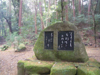 西坂参道は右というか、道なりに進む。分岐点には二丁標石が立つ。
