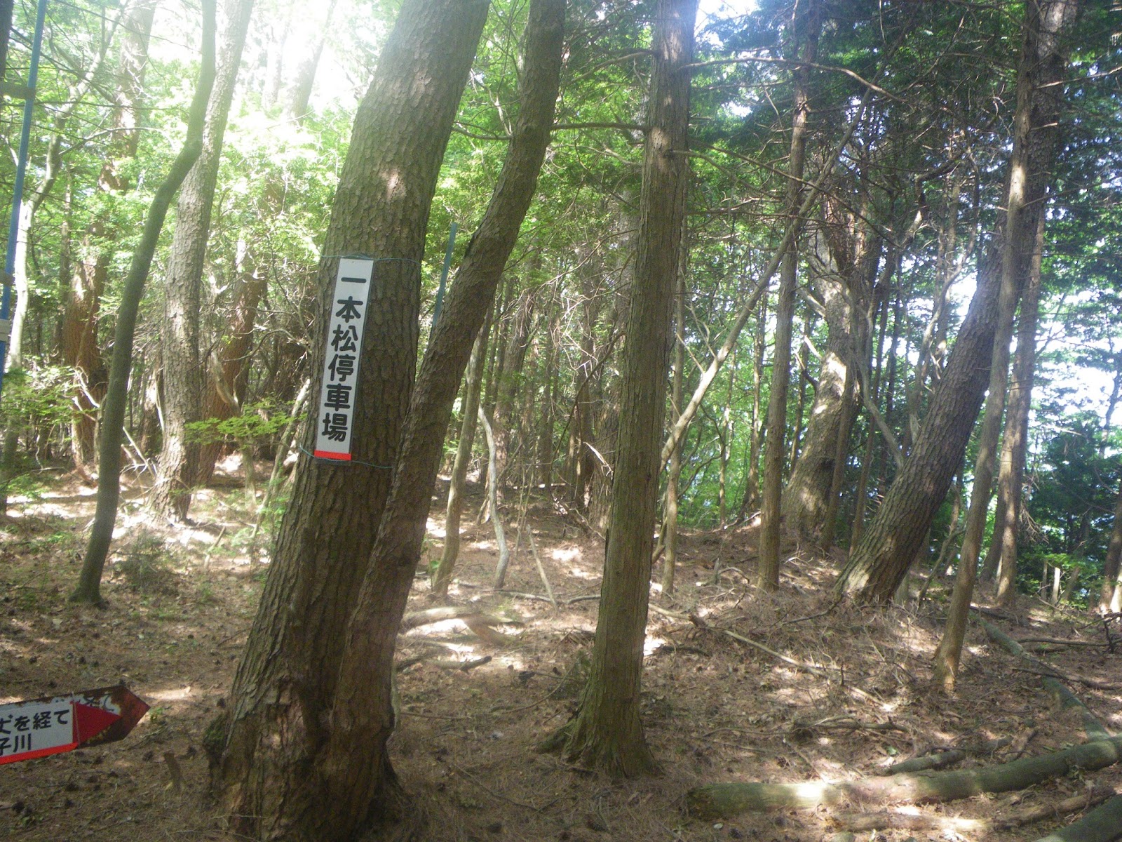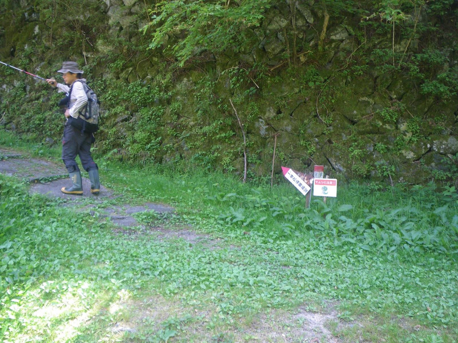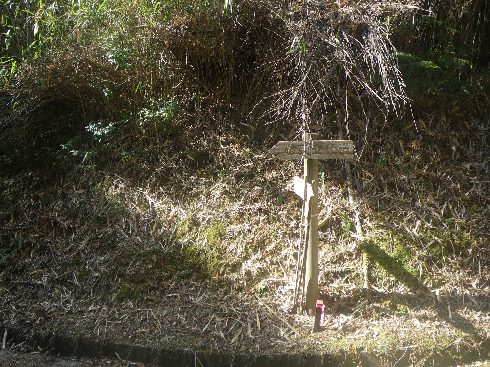 道の左手は崖。右手山側に標識などないものかと注意しながら車道を下る。