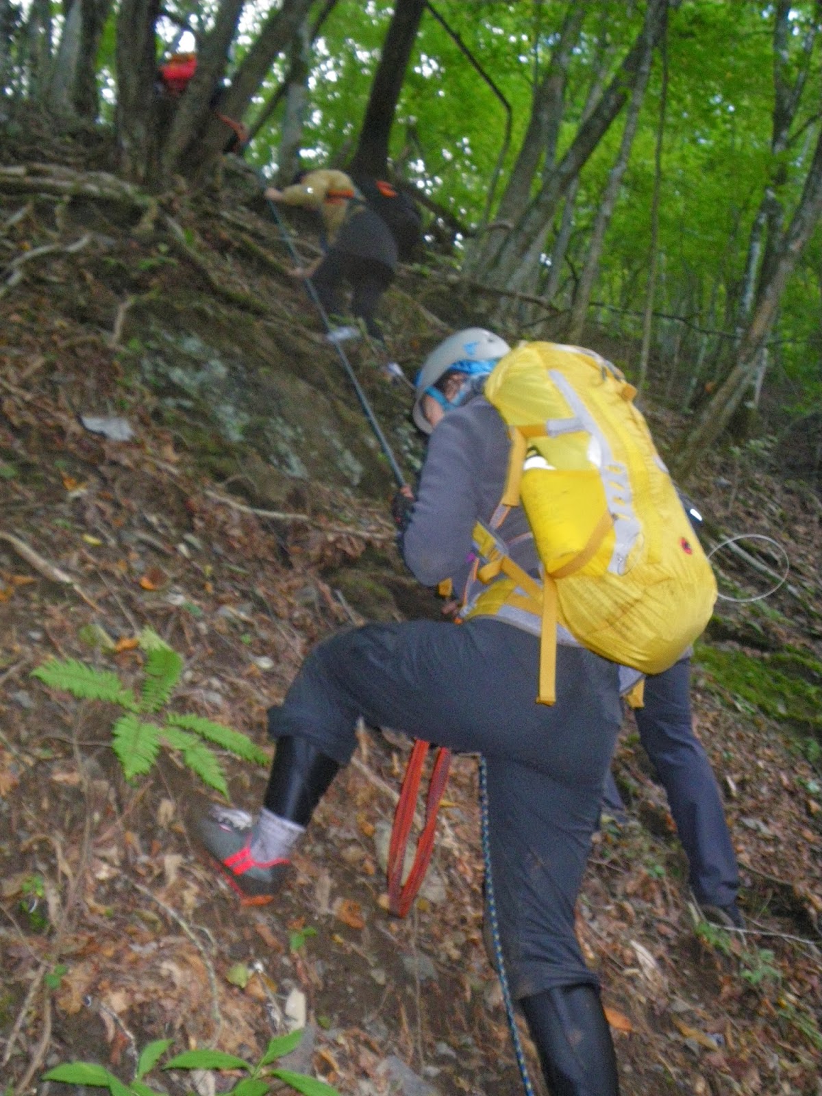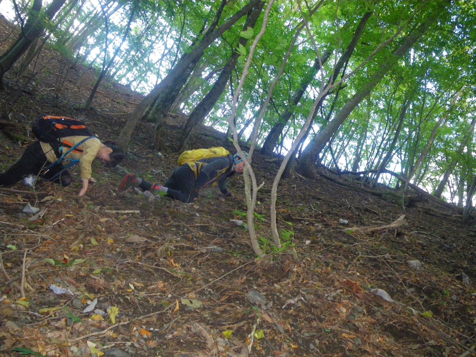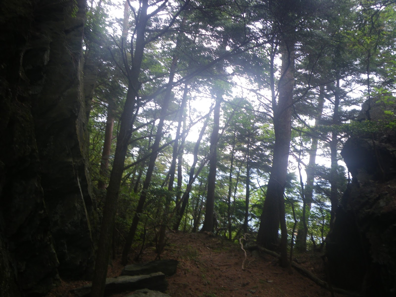 道の左手は崖。右手山側に標識などないものかと注意しながら車道を下る。
