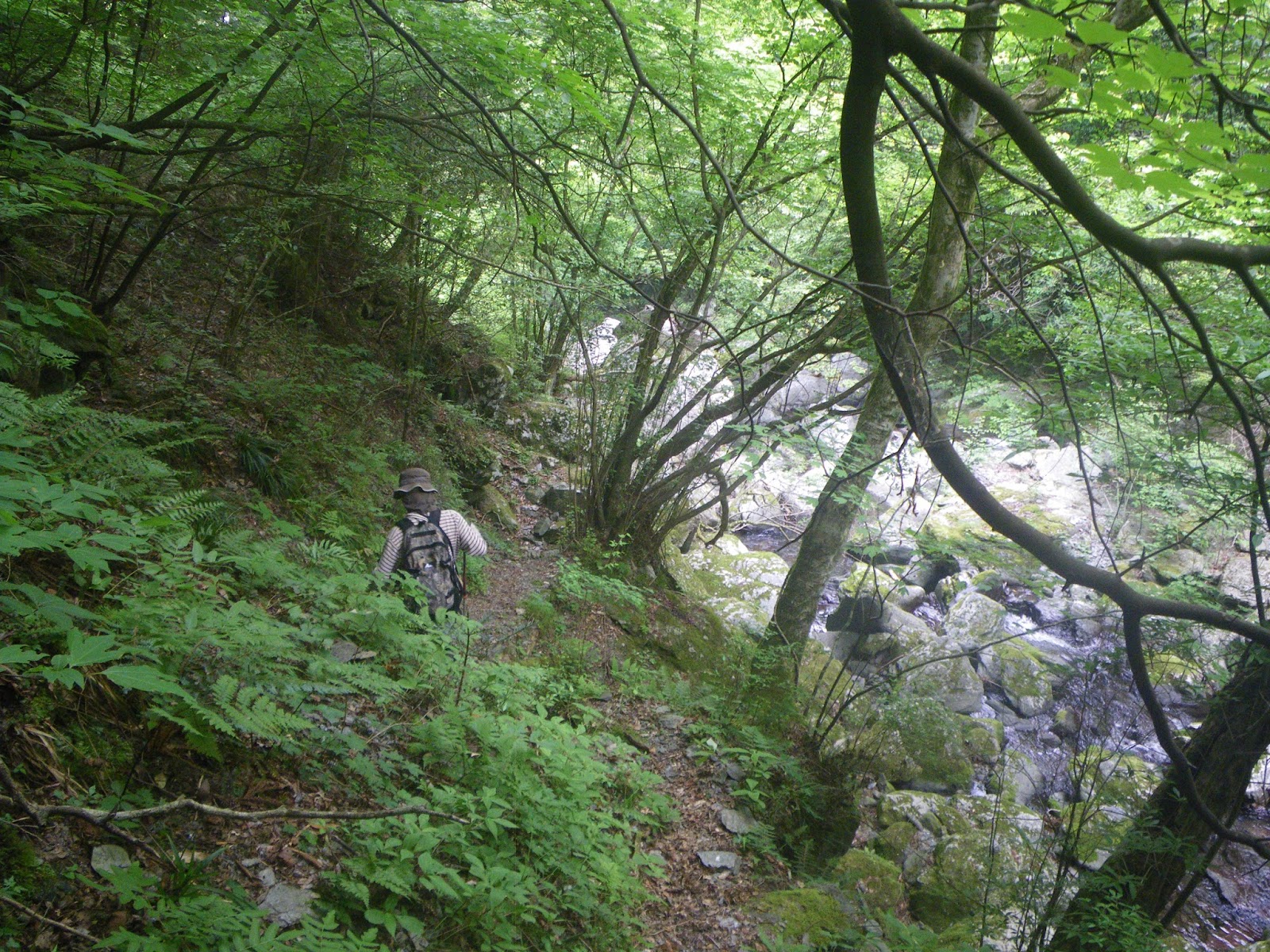 今回は 国見山を越えた下山口から立川川筋の柳瀬まで、実際は柳瀬で立川川左岸から右岸に渡る橋が大雨で落橋しているため柳瀬のひとつ南の集落、一の瀬に架かる金五郎橋を渡ることになるのだが、ともあれ立川川右岸山道に入る土佐北街道までを繋ぐこととする。