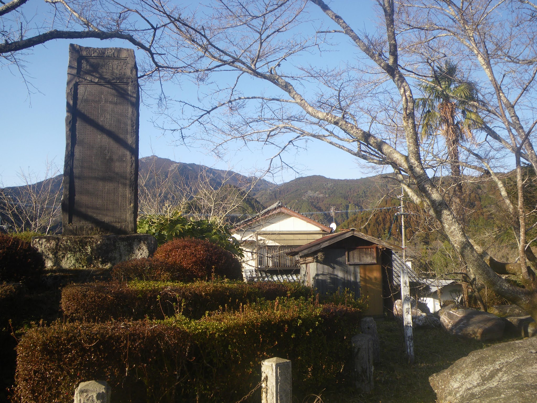 土居館跡前の道を西進。下井の流れを跨ぎ少し山に入ると小さな祠があり、その脇に「上の坊」の案内があり、「史跡 上の坊 本山南学寮跡 野中兼山が儒学者山崎闇斎を招いてこの場所にあった古寺で土佐南学を講究したといわれる。兼山は禅学より儒学に転向し、勉学に励み南学(海南朱子学)といわれるまでにその学問を発展させた」とあった。