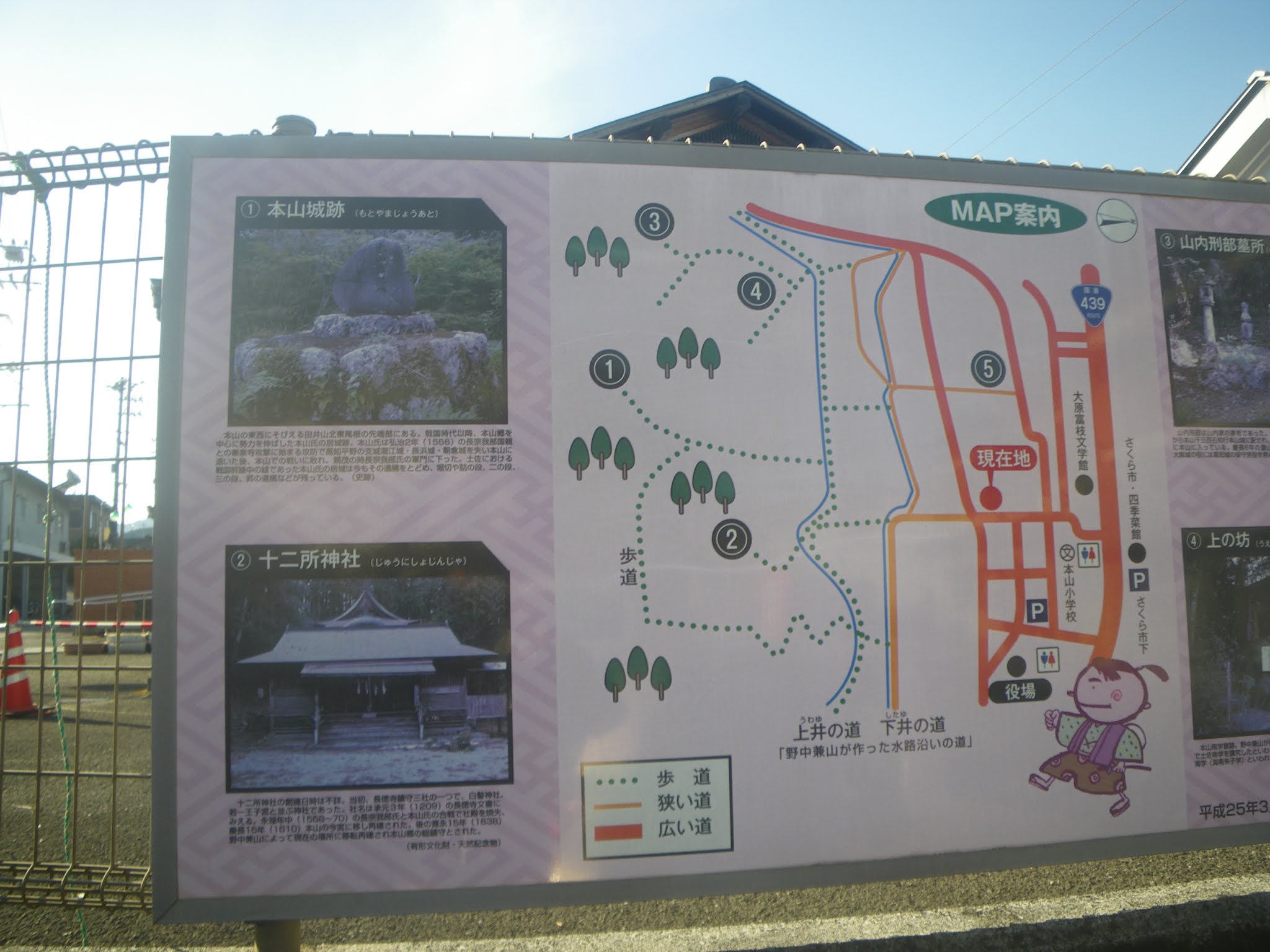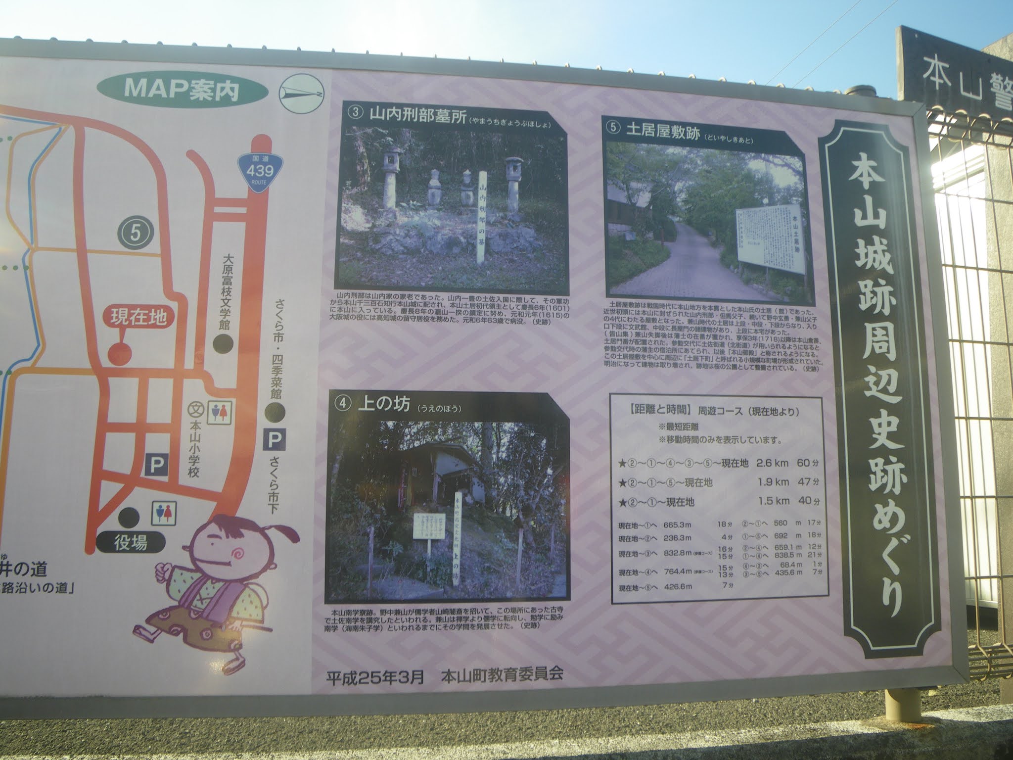 時間がなく上ったわけではないのだが、案内にあった本山城跡をメモしておく;