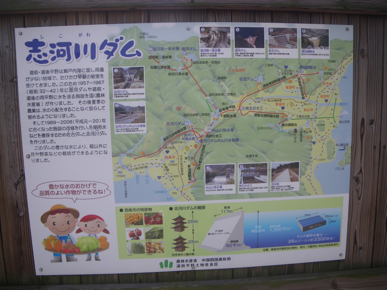 分岐点にあった案内には。旧松山大洲街道はこの地を進み、麓川と中山川にはさまれ、南に突き出た舌状尾根筋の首根っこあたりで麓川を渡り千部峠に進むとある。その先は大雑把に国道56号の道筋を中山に向かい、榎峠、犬寄峠を経て伊予大平、向井原、郡中、松山へと通じていたようである。